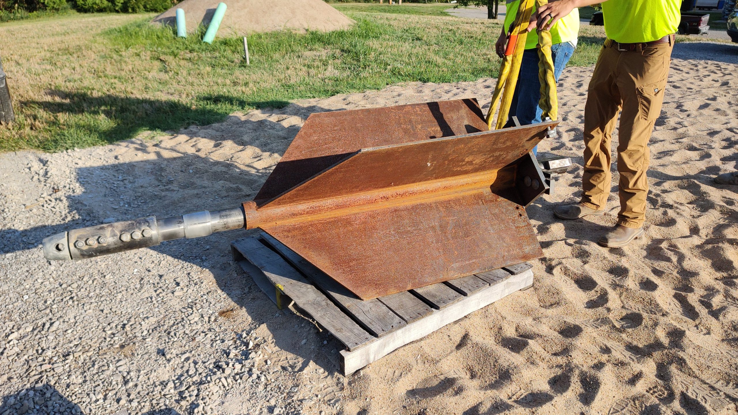 The collar vane, a rigid wing-like addition to the helical pile shaft, is driven into the ground as part of the helical pile installation. It acts as an anchor, improving the stability and load capacity of these foundational assets. The goal is to significantly increase the lateral performance of helical piles so that they can be used to support structures that must resist high wind loads — a class of structures typically founded on piles or drilled shafts, two foundational approaches that are reliant on concrete and require highly specialized equipment to install.