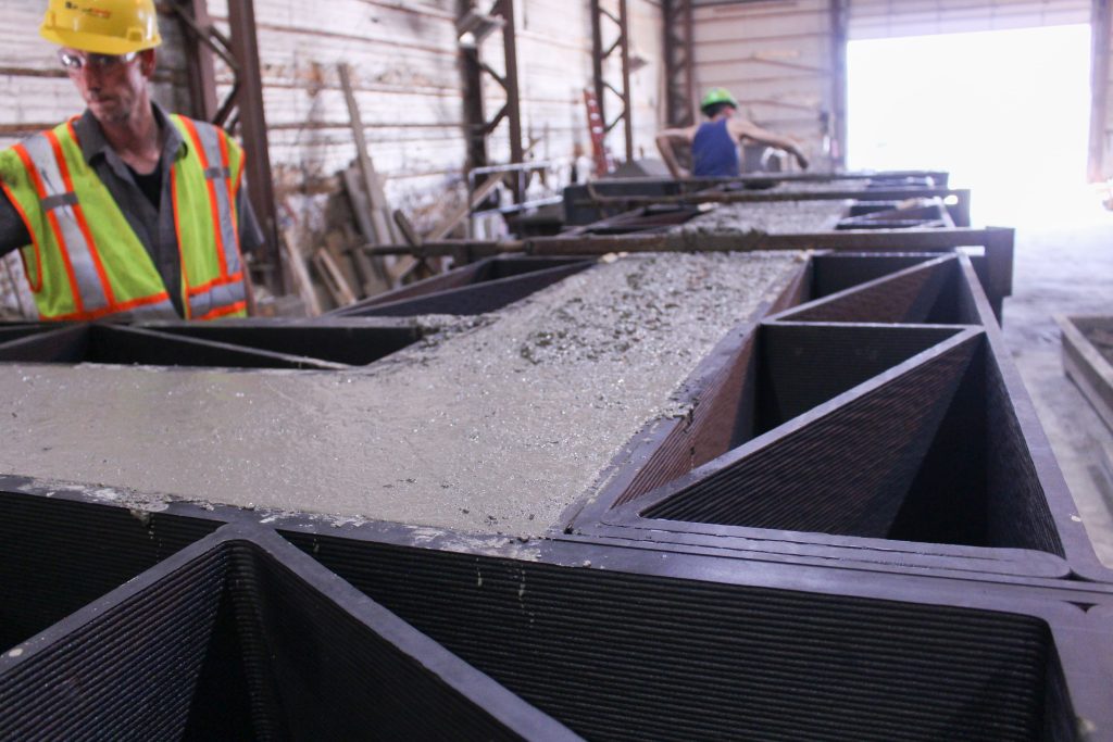 3D printed form of at the Unistress Corp. precast concrete plant in Pittsfield, MA.
