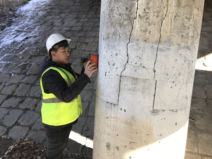 The problem we are trying to solve is the detection and monitoring of aging civil infrastructure components and systems in New England by using visual information and subsurface images in a virtual reality (VR) environment for data visualization and machine learning (ML) for data interpretation. Material aging and structural deterioration of selected candidate structures (e.g., highway bridges) will be frequently (from twice a day to once a week) inspected to develop large amount of sensor data for condition assessment using machine learning. The problem is important because, with frequent inspection of civil infrastructure systems, processing and visualization of large amount of multiple-format sensor data have become a challenging task at the system’s level for bridge engineers. Registration of 2D photographs and sensor images in a 3D environment aided with VR equipment (e.g., headsets, handles, controllers) can help bridge engineers to better register inspection and monitoring data in multiple formats (e.g., photographs, images, texts, sketches) to actual structures. Frequent inspection of structures can produce large amount of data required by machine learning, as well as capturing the weekly, monthly, and seasonal changes of background/baseline information. In this base funded project, we propose to 1) collect electromagnetic (EM) (e.g., optical, radar, and laser sensors) and mechanical (e.g., impact-echo, ultrasonic testing, pulse tomography sensors) sensor data on a frequent basis (from twice a day to once a week) to develop large amount of data for machine learning interpretation, 2) study the effect of material aging on structural deterioration of highway bridges, and 3) develop a VR platform for rendering sensor data (including bridge rating and inspection reports) of inspected